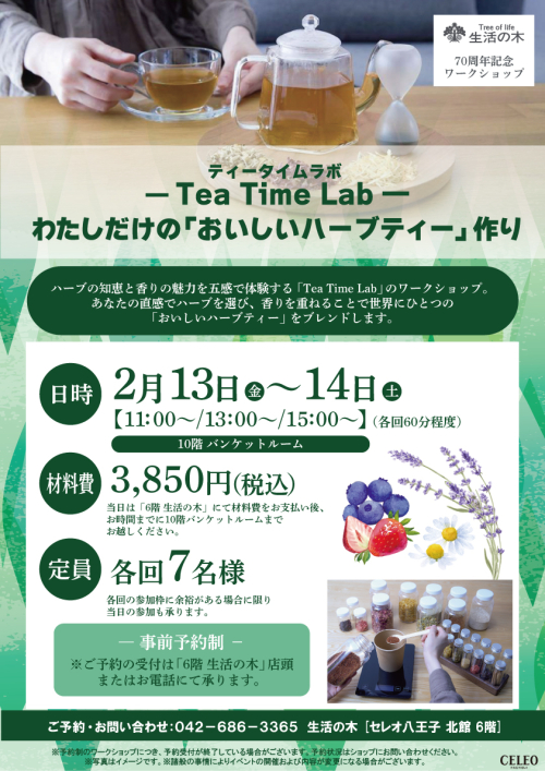 【生活の木】Tea Time Lab~わたしだけの「おいしいハーブティー」作り~