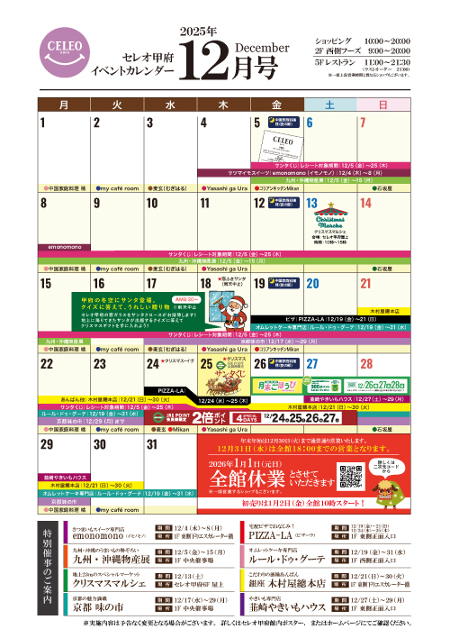 【2025年12月】セレオ甲府イベントカレンダー