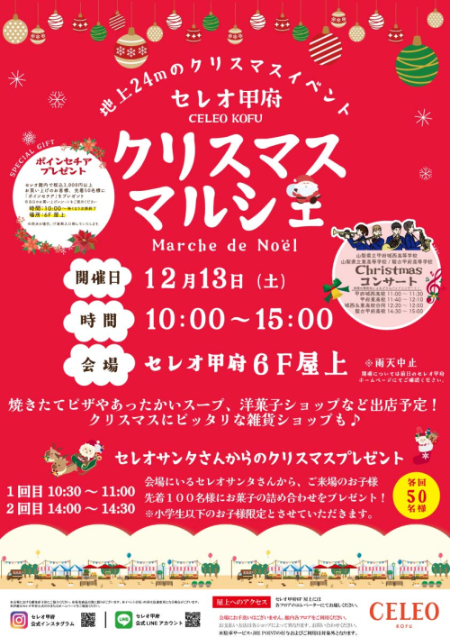 セレオ甲府 6F屋上広場にて「クリスマスマルシェ」開催!
