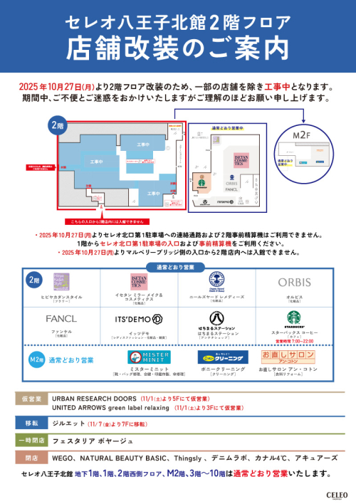 2025年10月27日(月)より2階フロア改装のため、一部の店舗を除き工事中となります。