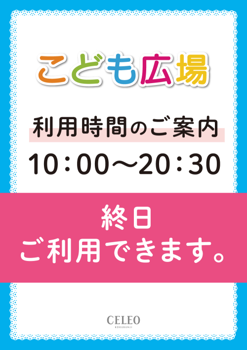 セレオ国分寺5Fの「こども広場」は終日開放しております。