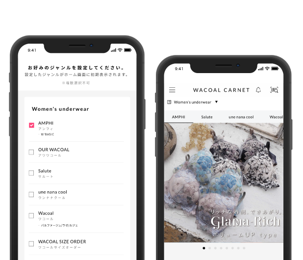 アプリをダウンロードすると、好きなジャンル・ブランドを選択することができます。