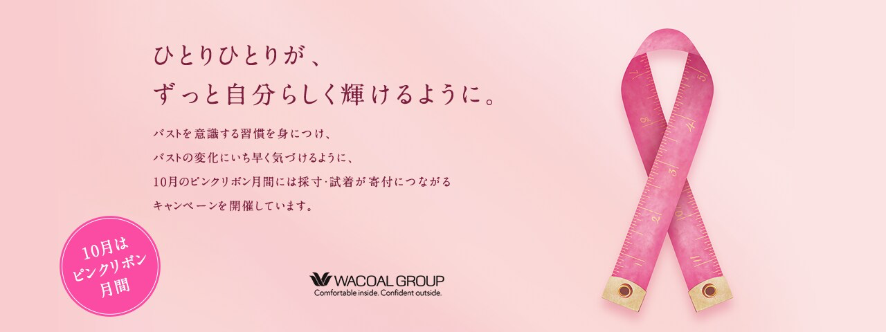 そんな想いでワコールは、乳がんの早期発見・早期診断・早期治療の大切さを呼びかける「ピンクリボン活動」を行っています。