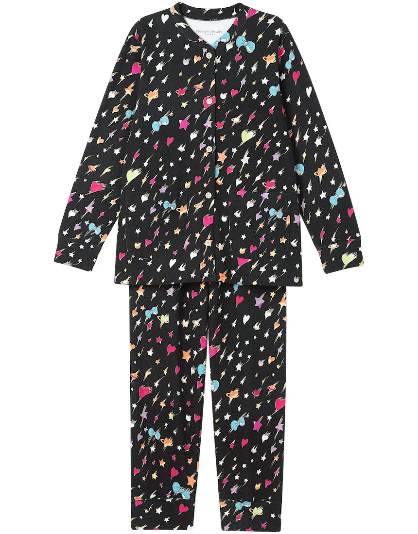 不思議の国の夜空にきらめく花火のイメージを、星やハートやリボンなどのモチーフで表現した柄🃏⭐️❤️🎀