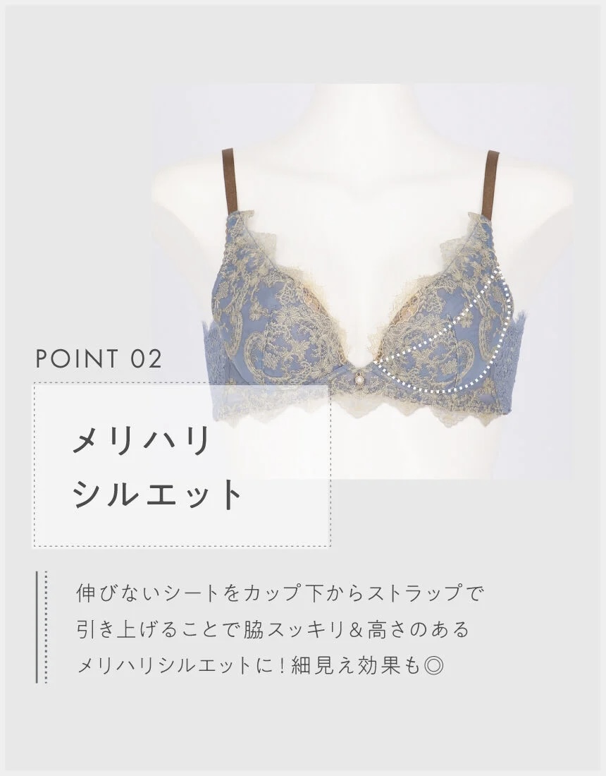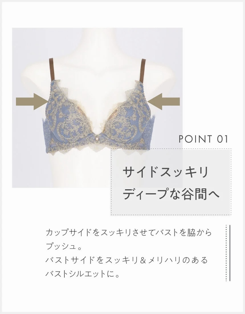 グラマラス&リッチな谷間をメイクし、脇スッキリ、細見え効果のある「脇スッキリタイプ」のブラジャー