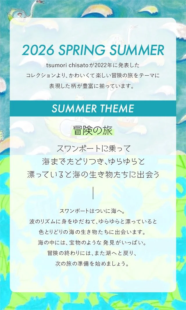 〈スワンボートに乗って海までたどりつき、ゆらゆらと漂っていると海の生き物たちに出会う〉