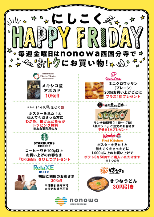 にしこくHAPPY FRIDAY開催中!
